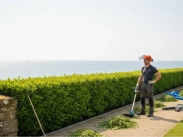Nos jardiniers interviennent à Saint-Malo, Dinard et Cancale pour tailler toutes les variétés de haies : lauriers, thuyas, photinias, bambous, etc. Nous ajustons la hauteur et la largeur selon vos préférences et la réglementation communale. Nos coupes sont nettes, régulières et effectuées avec du matériel affûté pour stimuler la repousse. À chaque passage, nous évacuons les déchets verts et laissons vos extérieurs parfaitement propres et ordonnés.